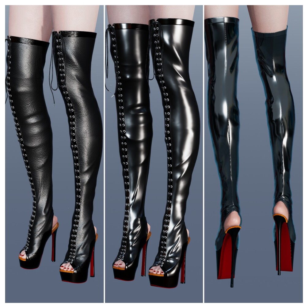 Lace High Boots A~L ( 12 in total) [6 heels * 2 sets (leather/latex) ]
